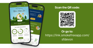 Join the 500,000 people who’ve already quit smoking with the Smoke Free app. To get started simply scan the QR code below, sign up at https://link.smokefreeapp.com/sfdevon or search ‘Smoke Free‘ in the App Store or on Google Play. If you live in Devon, you’ll get full access to all premium features FREE for six months, usually worth £60! (T&Cs apply).